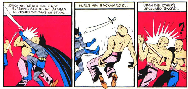 The head-butting is at a minimum this episode, as Michael Bradley is swayed towards the Dark Side and begins sharing Michael Kaiser’s opinion of “The Batman vs. the Vampire” two-parter, which features Batman taking on the nefarious villain known as The Monk in the pages of DETECTIVE COMICS #32.
